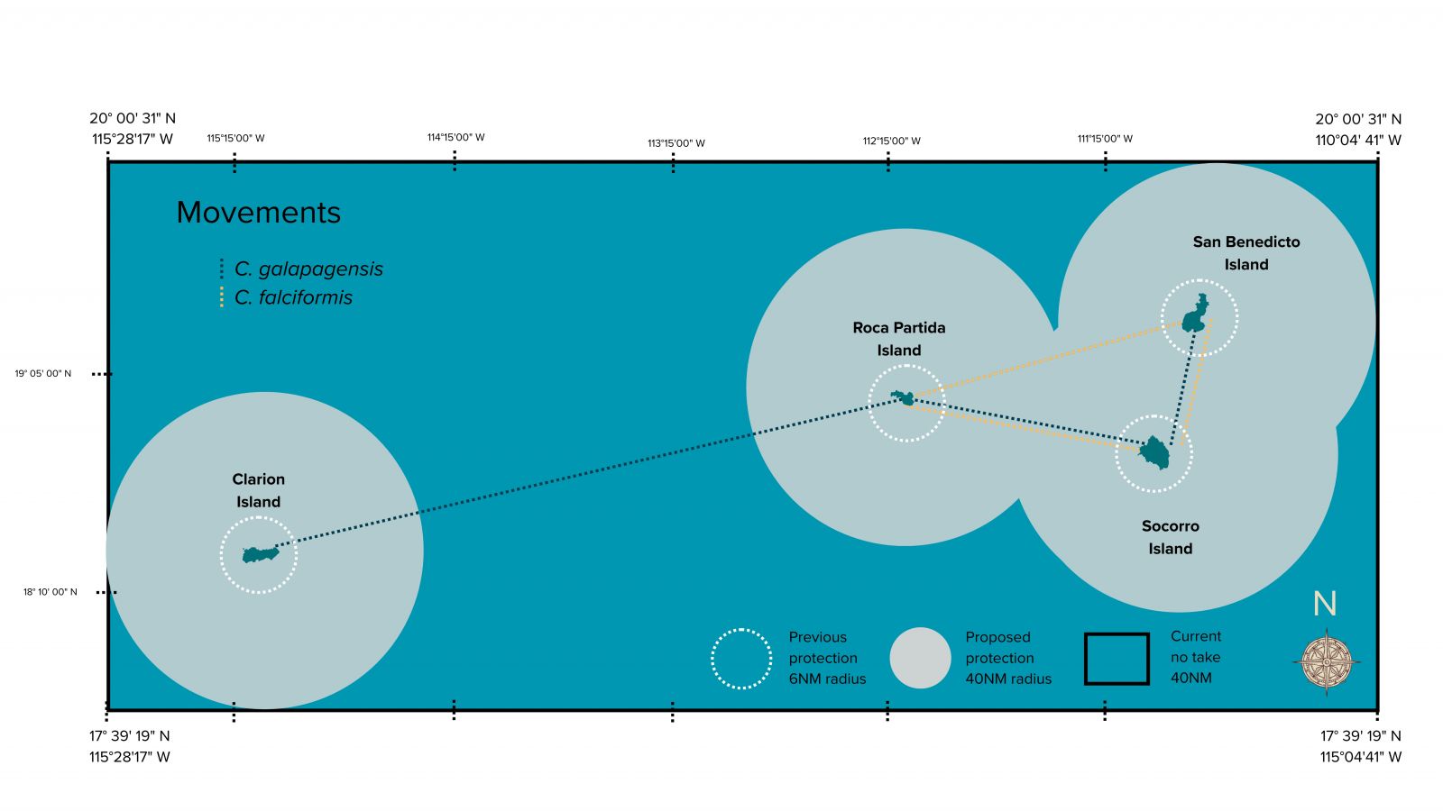 Aunque los movimientos de larga distancia entre AMPs se produjeron en un número limitado de individuos, su importancia es profunda. Un tiburón sedoso marcado en Roca Partida viajó a Clipperton, otro tiburón sedoso se trasladó de la isla Wolf a Clipperton y regresó, una hembra de tiburón Galápagos marcada en la isla Socorro se trasladó al atolón Clipperton y finalmente fue registrada en la isla Darwin, ¡un récord de 3000 km!